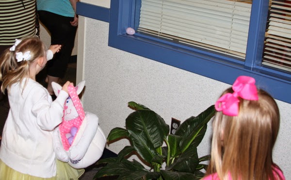 Sweet Anna Lien was helping Addie find the eggs (once she finally broke away from the window).