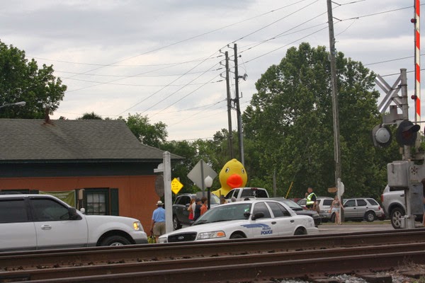 When the train passed, Addie was thrilled - yet again - to see the giant duck looming in front of us!